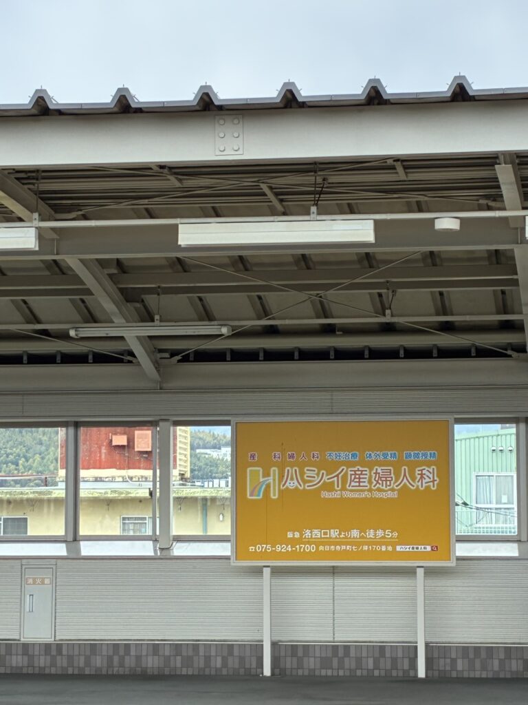 ↑阪急洛西口駅のハシイ産婦人科の看板 地域で愛される産院