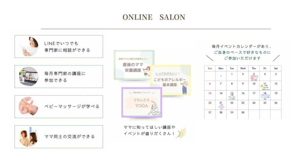 協会では産後ママのためオンラインサロンを運営しています。毎回オンタイムでは40人前後のママが参加してくださっています。