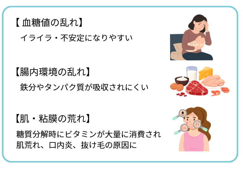 今回は糖質過多による体調不良のリスクについてお伝えします。